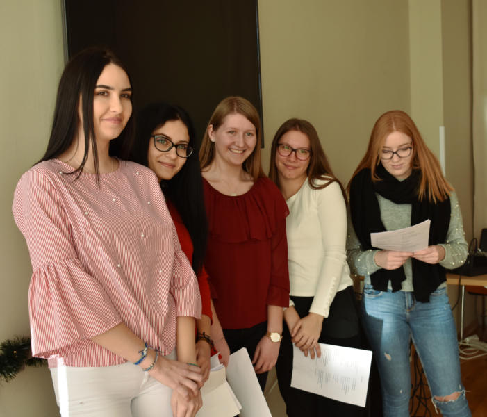 Posebnu su draž susretu udahnule učenice IV.c razreda hotelijersko-tusrističkog smjera Lara Guzić, Vanessa Šorgo i Karin Klarić koje su korisnicima doma pročitale sjećanja na božićno slavlje i blagdanske običaje koja su s njima podijelile njihove bake i to na hrvatskom jeziku te na talijanskom i buzetskom dijalektu. Iz publike su se mogli čuti komentari korisnika koji su se prepoznali u pričama i potvrdili da je u prošlosti sve bilo mnogo skromnije, a ljudima je najbitnije bilo vrijeme provedeno u zajedničkom druženju, veseleći se malim stvarima. Kao i svake godine, za naše smo drage prijatelje iz Doma pripremili i darove: ukrase za bor u obliku pahuljica koje su izradile učenice IV. C razreda. I naši su domaćini za nas pripremili darove: čokolade za učenike, i buket cvijeća za profesore.